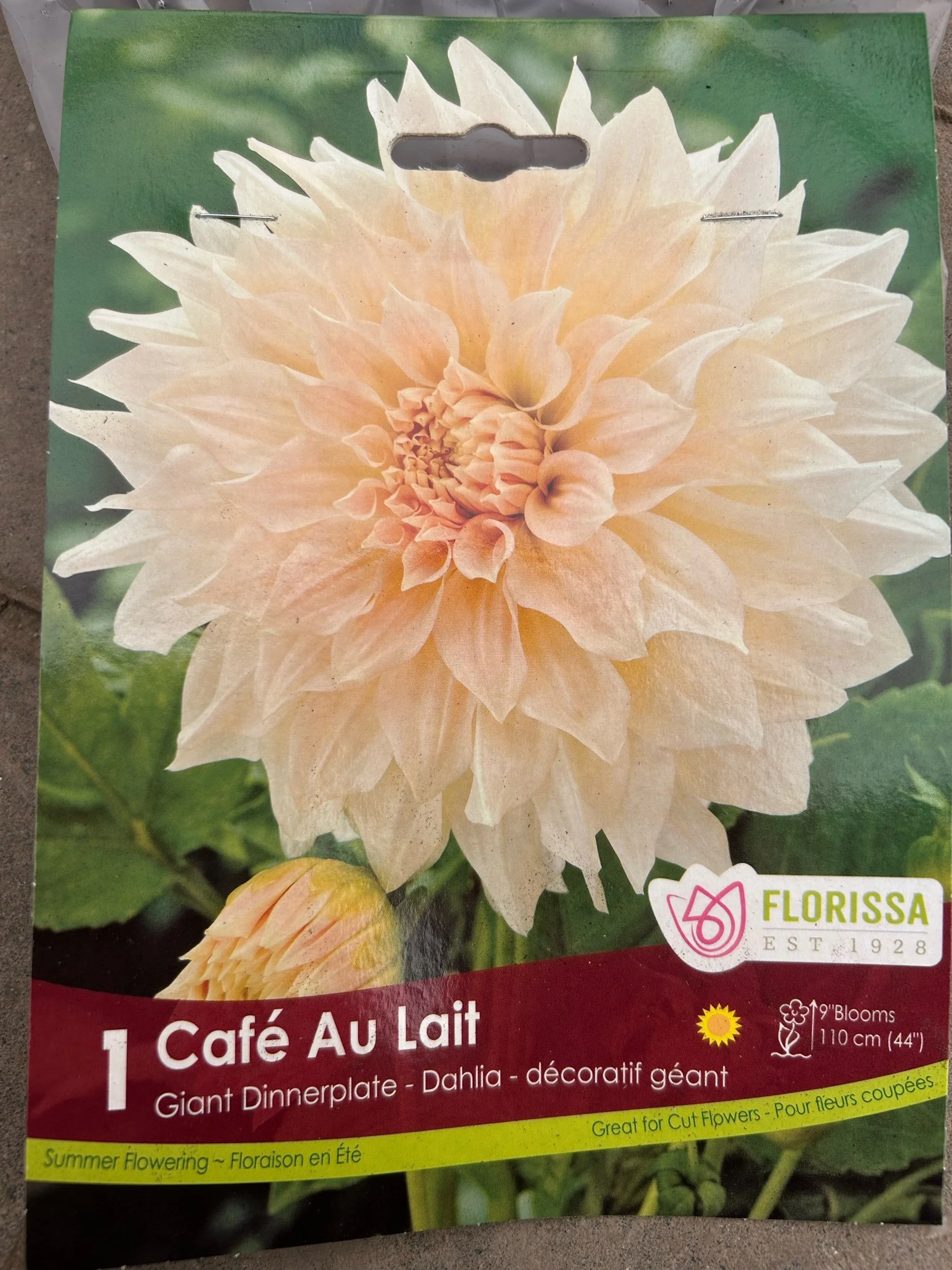 Cafe au Lait Dahlia – Dinnerplate Flower Bulb (Large Bloom). Known for its large, vibrant blooms, this dahlia adds bold colour and texture to summer gardens and cut flower arrangements.
